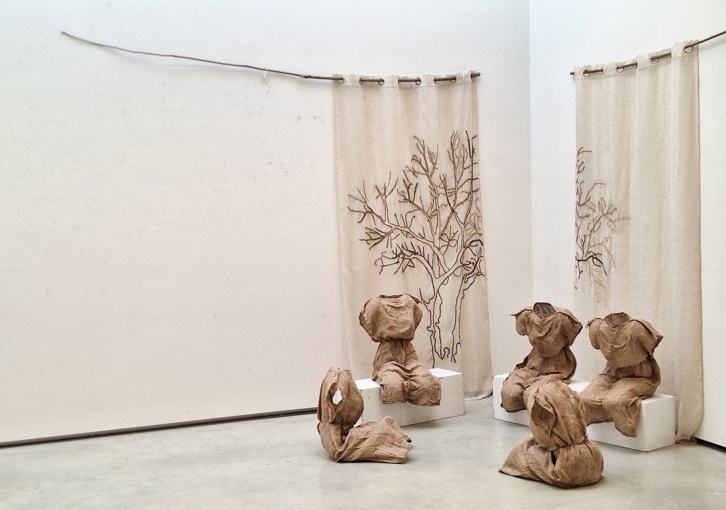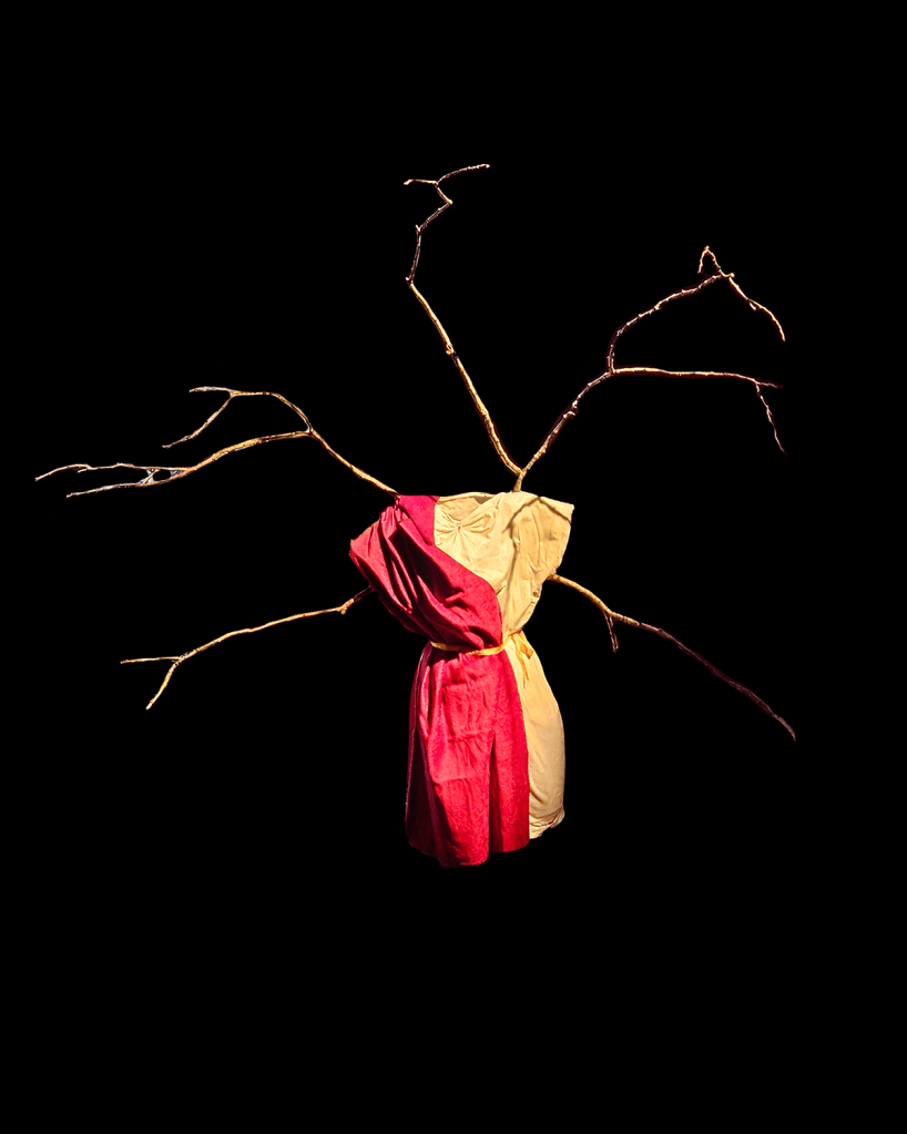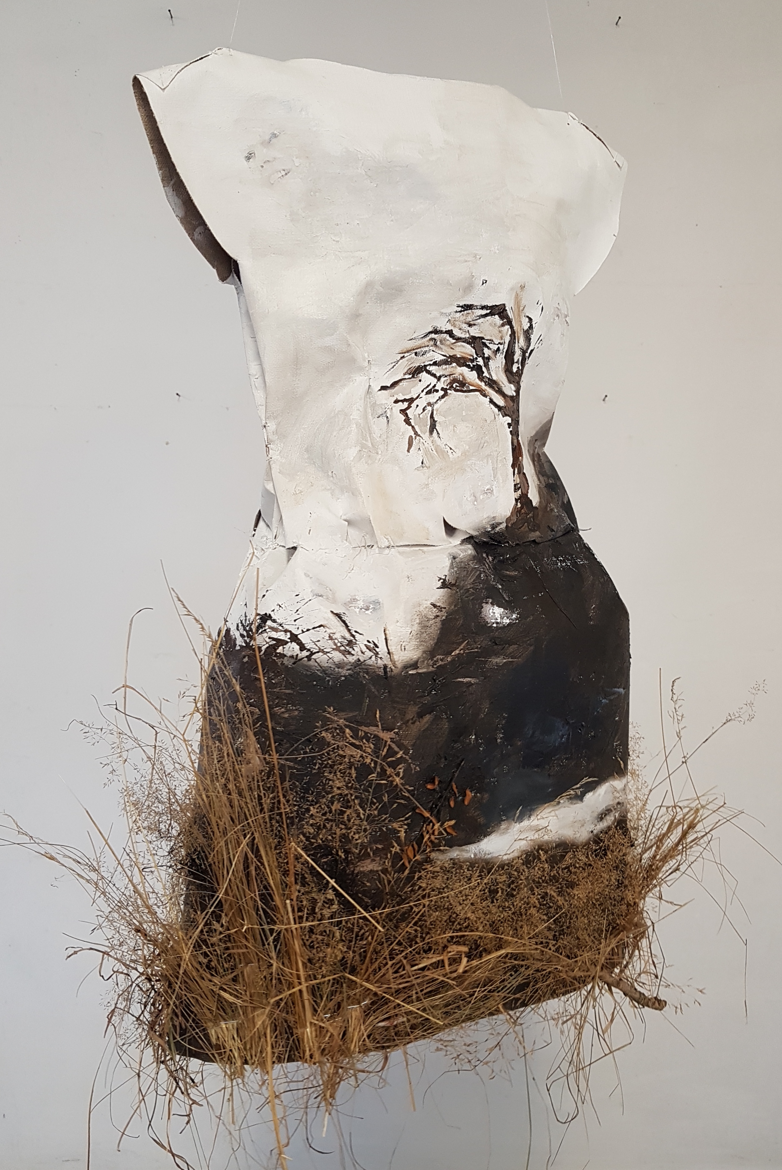 Die essentie wordt ook gereflecteerd in de materialen die Joyce gebruikt, want ook die hebben vaak een directe connectie met de natuur. Zo gebruikt zij vaak jute als basis voor haar jurken en schilderijen, takken om kracht en spanning te bewerkstelligen, grassen om te aarden. En als ze schildert, dan is dat in olieverf, meestal in ook in natuurlijke kleuren: geel van de zon, zwart, oker en omber van de aarde, wit van de wolken.